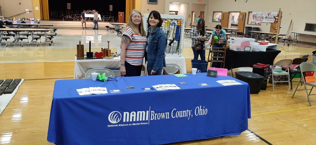 Nothing says spring like the feeling of fresh air blowing through our house on a warm spring day like the afternoon after the Georgetown Community Day at Georgetown Elementary. After two years of isolation, I think everyone was looking for an excuse to get out of the house and be around people again. “Working a booth” was a quiet victory for both Anita and I. Anita and I had met five years earlier when I founded NAMI Brown County. We have been through a lot in the last five years, the death of her son, me being hospitalized three times, COVID, and the war in the Ukraine. As I remarked to Anita in the car, “We are just grateful to be well enough to work a booth”. Welcome to a new chapter in our lives. Watching Anita console a grieving mother with the touch her hand, validated again for me today why I founded NAMI Brown County. “Together, we are making a difference, one day at a time, one life at time.”